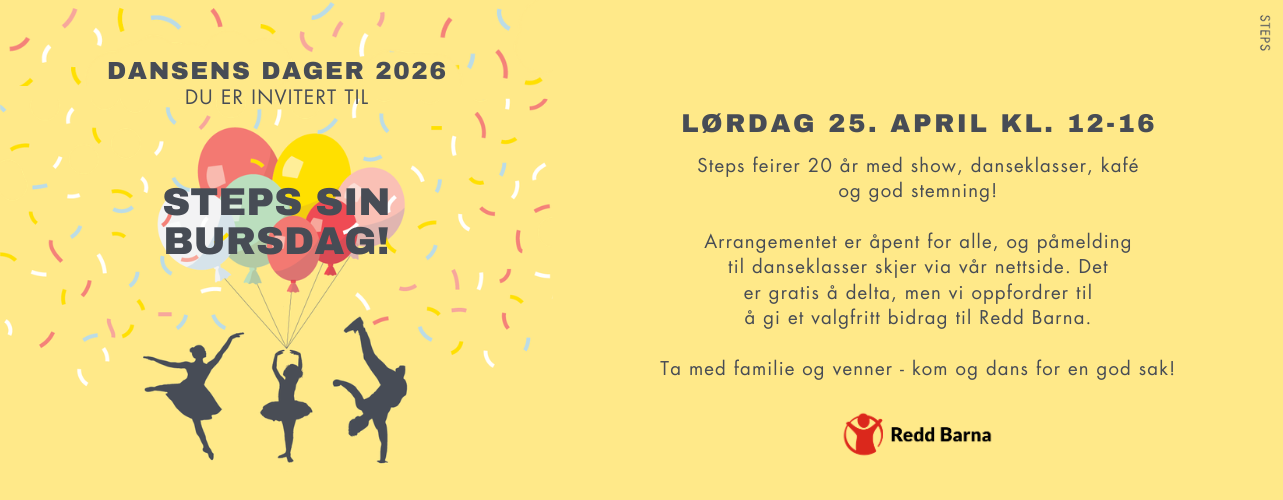 Velkommen til Steps Dansestudio lørdag 25. april kl. 12:00–16:00! Steps feirer 20 år med show, danseklasser, kafé og god stemning :-) Arrangementet e...